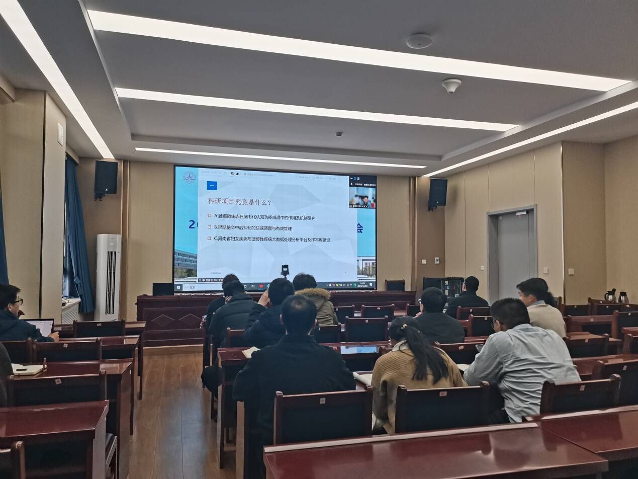 12月22日,医疗保障学院召开2026年国家级项目申报工作推进会。院长谷景亮传达校(院)2025年科技工作与人才发展会议精神。各教研室负责人、青年教师及科研骨干等参加了本次会议。会议邀请郑州大学教授苗豫东、杭州电子科技大学教授武健作专题讲座,同时开展科研诚信主题教育活动。会议由学院副院长宋燕主持。
