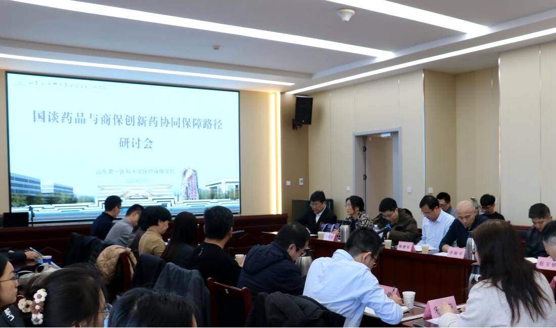 为探索国谈药品与商业健康险创新药在多层次保障体系中的协同机制,推动创新药物可及性与可负担性研究,2026年1月10日,山东第一医科大学医疗保障学院在济南主校区成功举办“国谈药与商保创新药协同保障路径学术研讨会”。来自政府相关部门、高等院校、医疗机构及商业保险机构等近30位专家学者参会交流。会议由学院副院长宋燕主持。