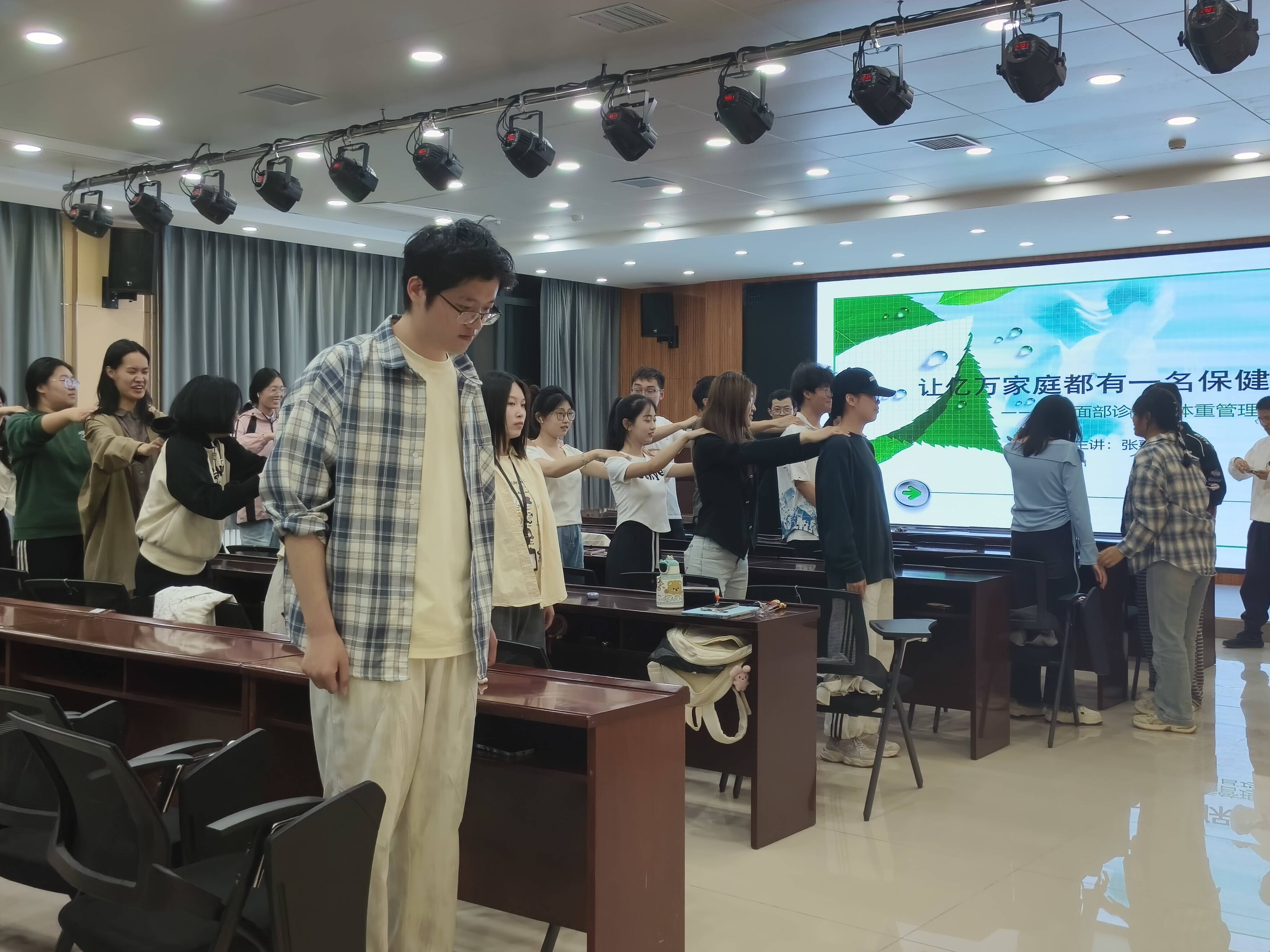 从“指尖上的中医”到“动起来的养生”,八段锦体验环节成为连接传统与现代的桥梁。专业教练以“调身、调息、调心”为核心,为大家讲述动作的养生功效,让同学们领略到中医运动养生“形神共调”的精髓,感受传统文化与现代健康的深度融合。