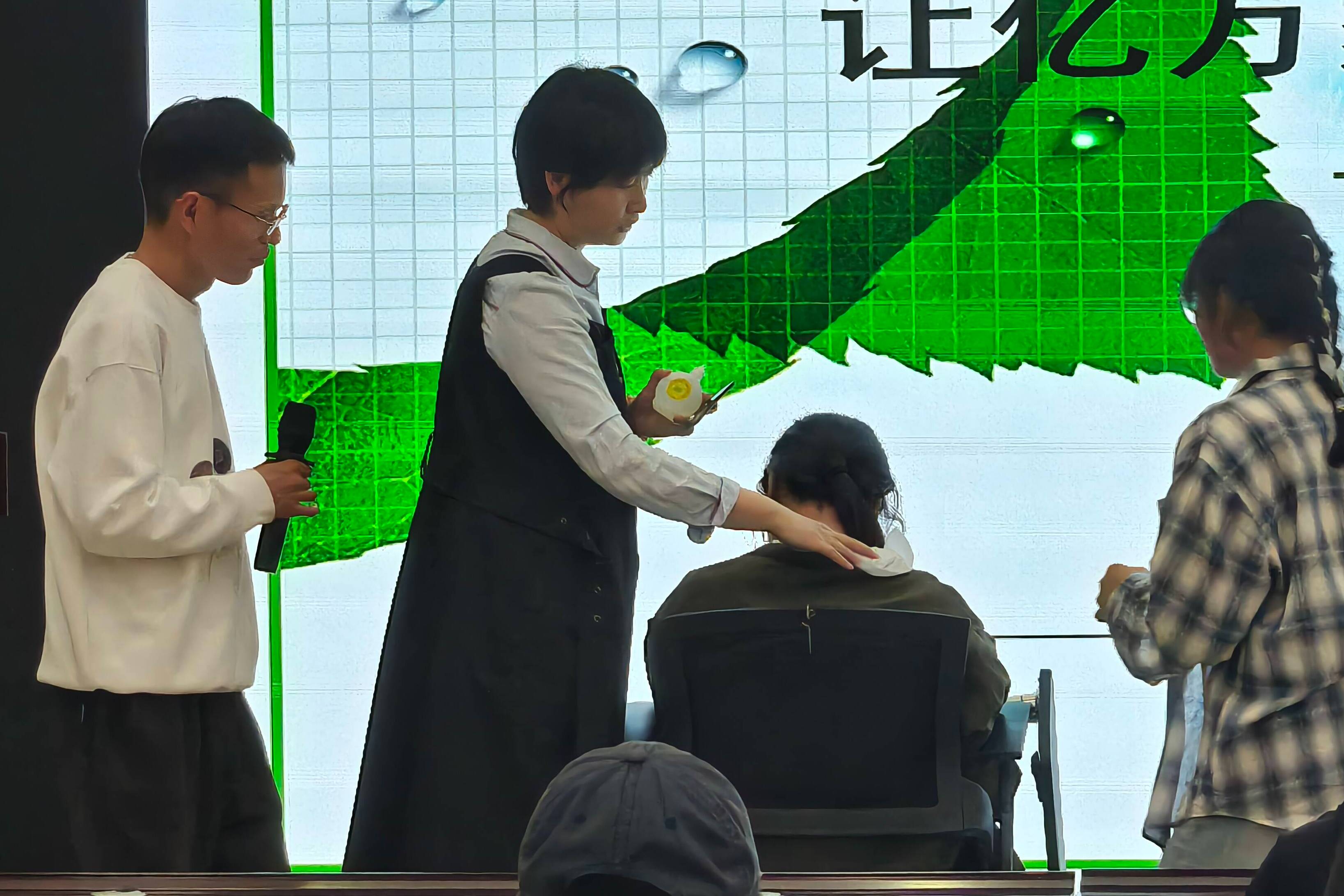 在中医适宜技术体验区,专业医师团队带领同学们依次体验推拿按摩、拔罐刮痧及艾灸等传统疗法。医师一边演示点穴手法,一边讲解中医理疗的养生原理,将讲座中的经络理论转化为可触可感的养生技法。