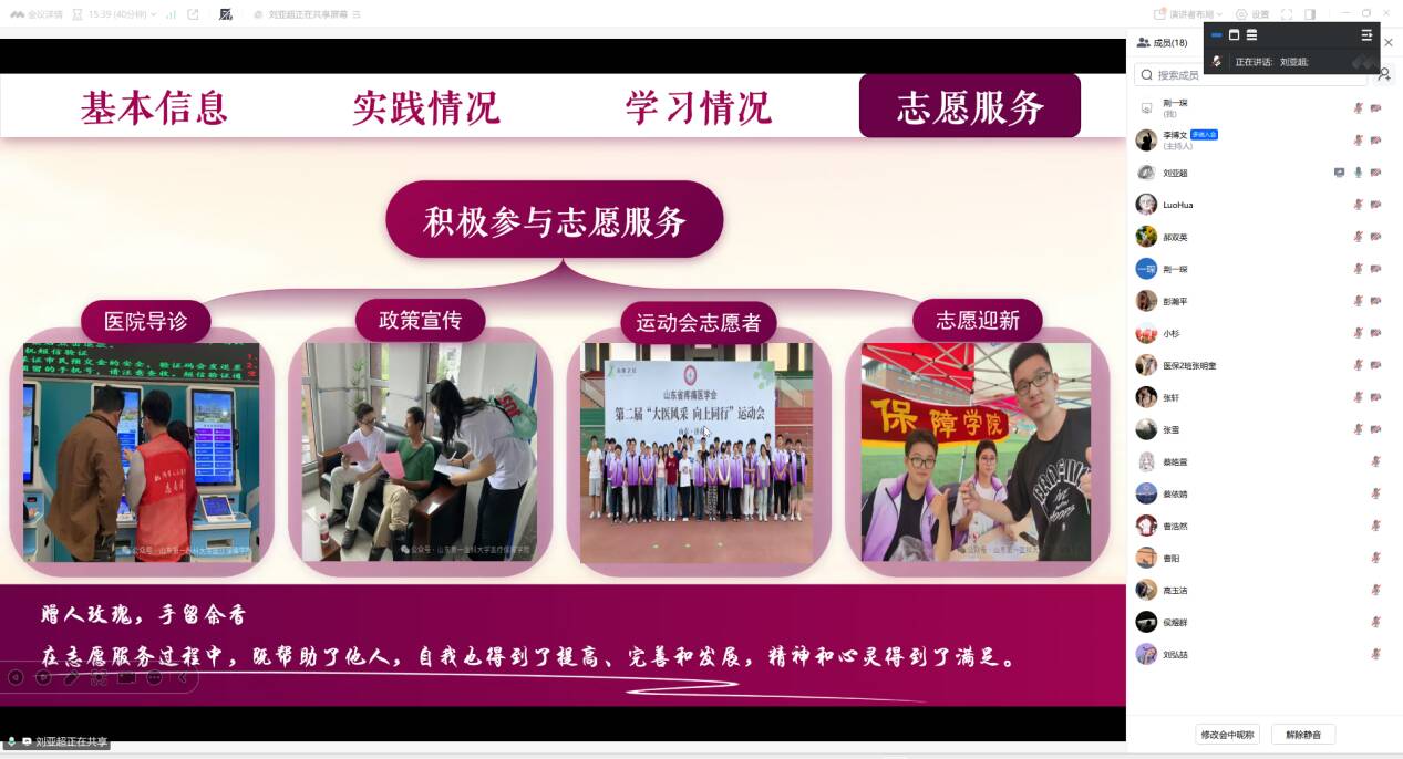 此次线上答辩会的成功举办,不仅为优秀学子提供了展示自我的平台,更以“榜样示范”的形式搭建了学习交流的桥梁。未来,医疗保障学院将继续以评促优,激励广大学生以先进为范,在求学路上踔厉奋发,成长为德智体美劳全面发展的新时代青年。