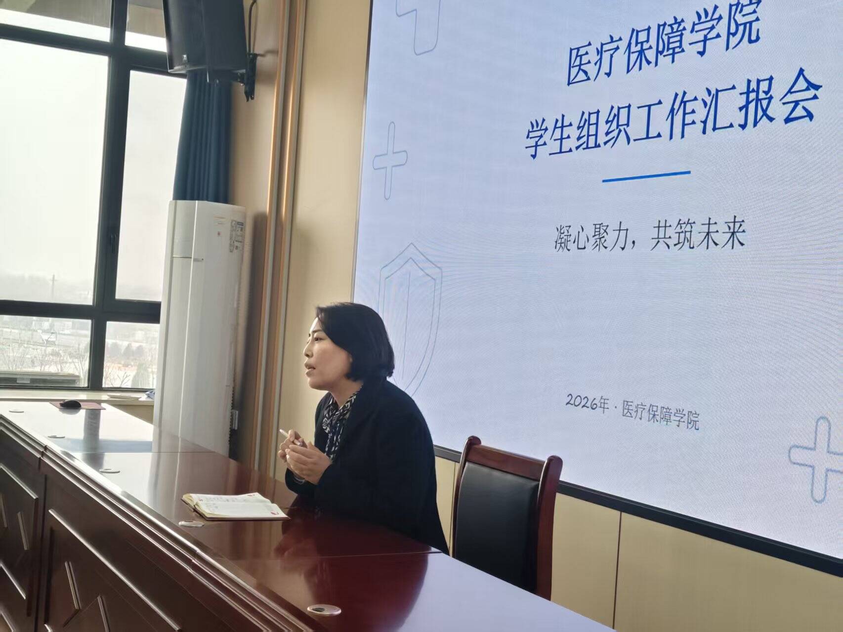 为全面总结学生组织过去一年的工作成效,明确新学期工作方向,推动学院学生工作高质量发展,3月16日中午,医疗保障学院在学院503会议室组织召开学生组织工作汇报会。学院党委副书记岳芸、医疗保险社团指导老师石印出席本次会议,会议由学院辅导员张琪主持。学生会、青年志愿者协会、医疗保险社团的主席团成员及各部部长参加会议。