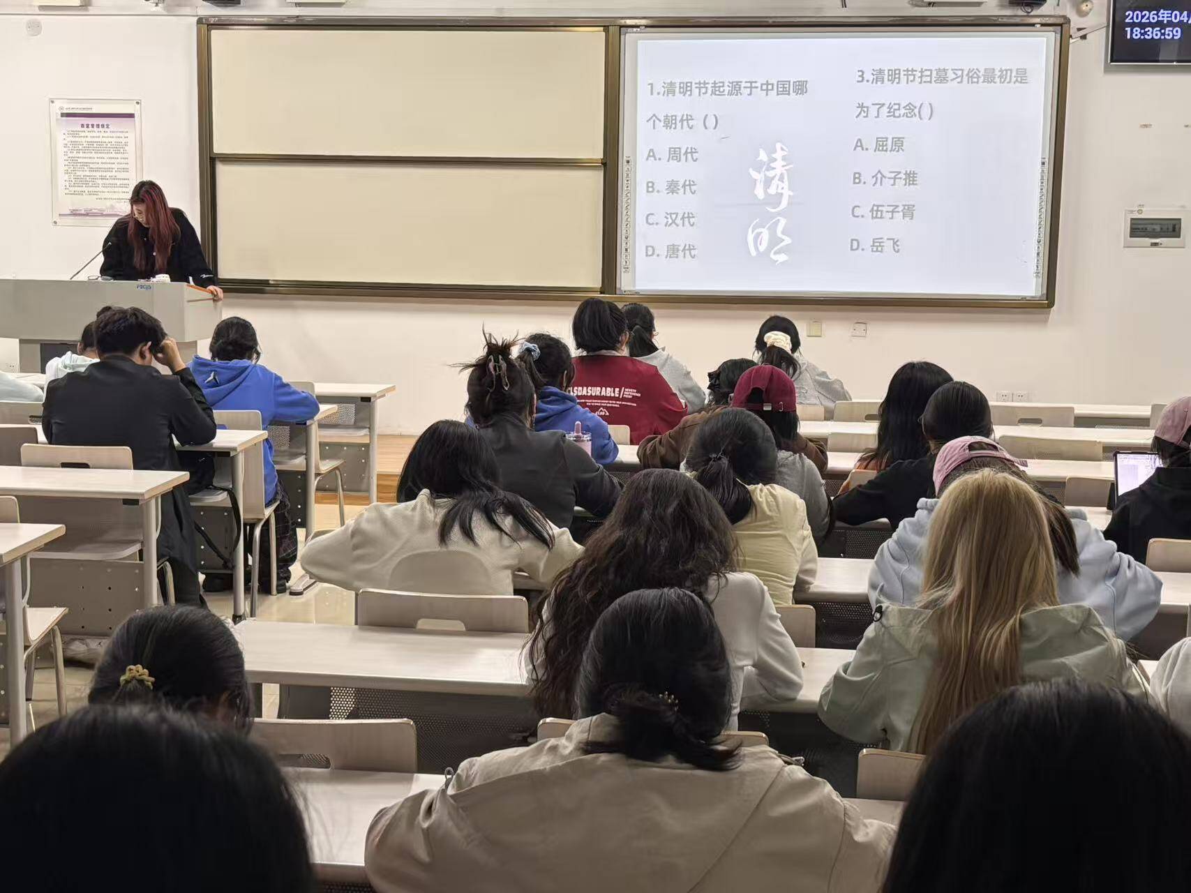 为进一步深化“绿色祭祀、安全第一”的理念,活动现场组织观看了关于清明缅怀先人并注意防火安全的宣传教育视频。视频生动展示了传统祭祀方式可能引发的安全隐患与环境污染,让同学们知道文明祭扫的重要性。最后的知识竞答环节,围绕清明节文化与绿色祭祀安全知识展开,同学们在互动中将文明祭祀的理念内化于心。