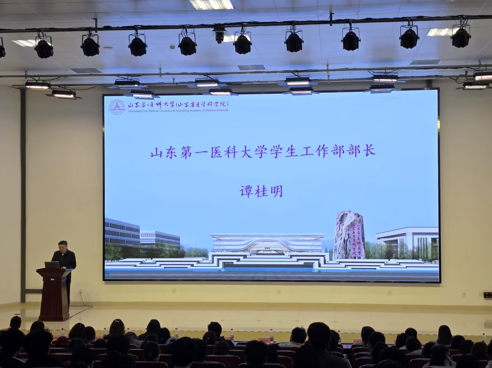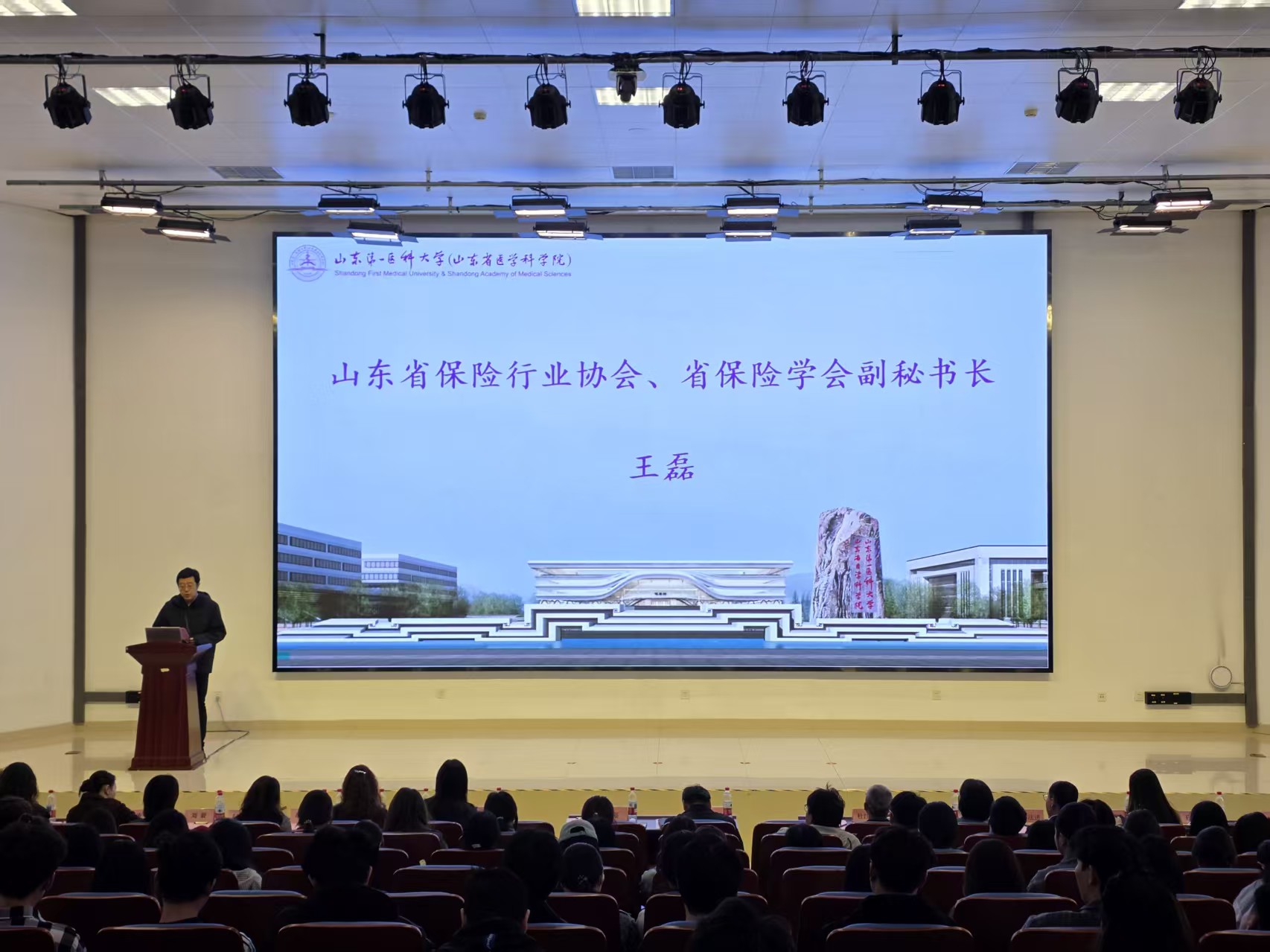 为搭建行业与高校人才精准对接的桥梁,助力学生明晰职业发展方向、锚定成长坐标,4月8日,由山东省保险行业协会、山东省保险学会与山东第一医科大学学生工作部联合主办,医疗保障学院承办的“引领职业发展,赋能青春成长”山东保险业校园路演暨职业路径宣讲会于生科楼报告厅顺利举行。山东省保险行业协会、省保险学会副秘书长王磊,山东第一医科大学学生工作部部长谭桂明,保险行业专家及23-25级医疗保险专业全体学生到场参会。